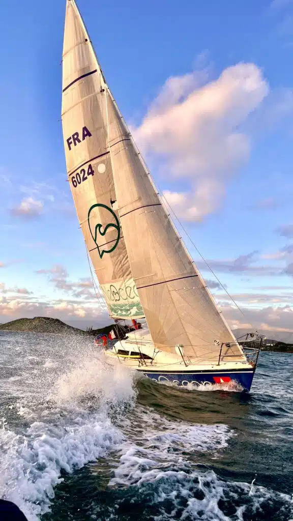 L’humilité – terme si cher dans la culture calédonienne – d’abord ; assez timide, peu à l’aise dans les négociations financières, Damien s’est présenté sobrement et m’a conté son histoire, celle d’un marin passionné qui cherche à atteindre ses objectifs pédagogiques et sportifs en sortant de sa zone de confort et en se bougeant le winch pour rencontrer des partenaires financiers. Il m’a également raconté son expérience avec Thierry Robert, l’ancien propriétaire, lors de la dernière Groupama Race pendant laquelle – crève-cœur ! -, ils ont dû abandonner à cause d’une casse mécanique. Petit bateau, petits moyens mais grandes espérances et ambitions : nous avions déjà des points communs qui dessinaient un chemin analogue.